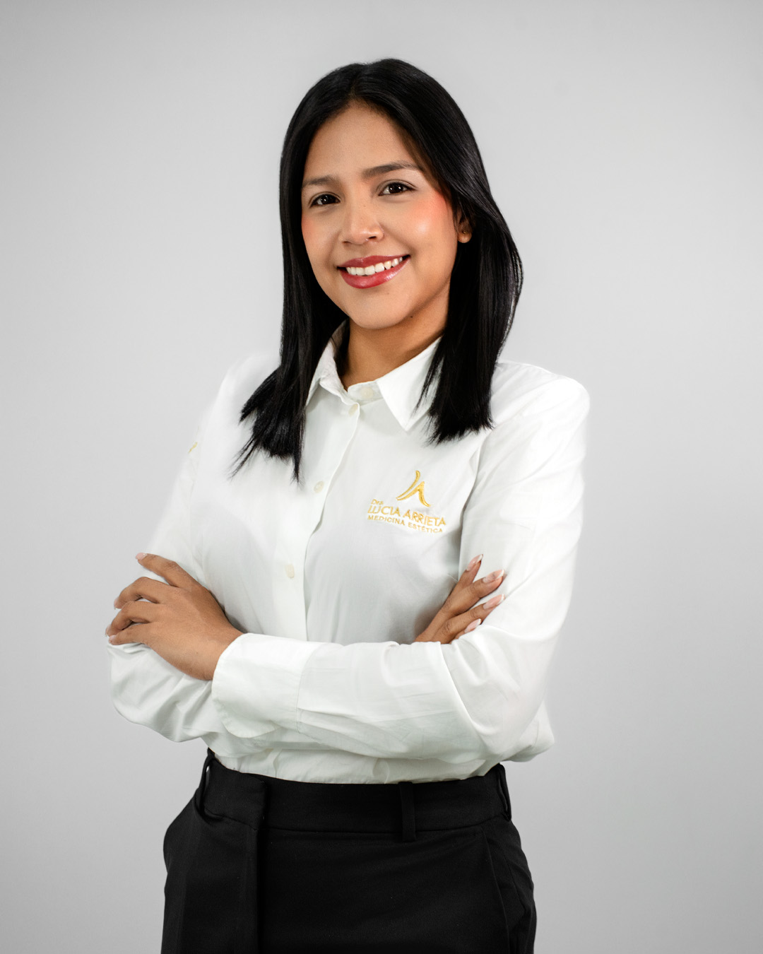 “La Dra. Lucía Arrieta es una médico certificada, especializada en mejorar los rasgos faciales de sus pacientes por medio de la aplicación de procedimientos estéticos mínimamente invasivos.